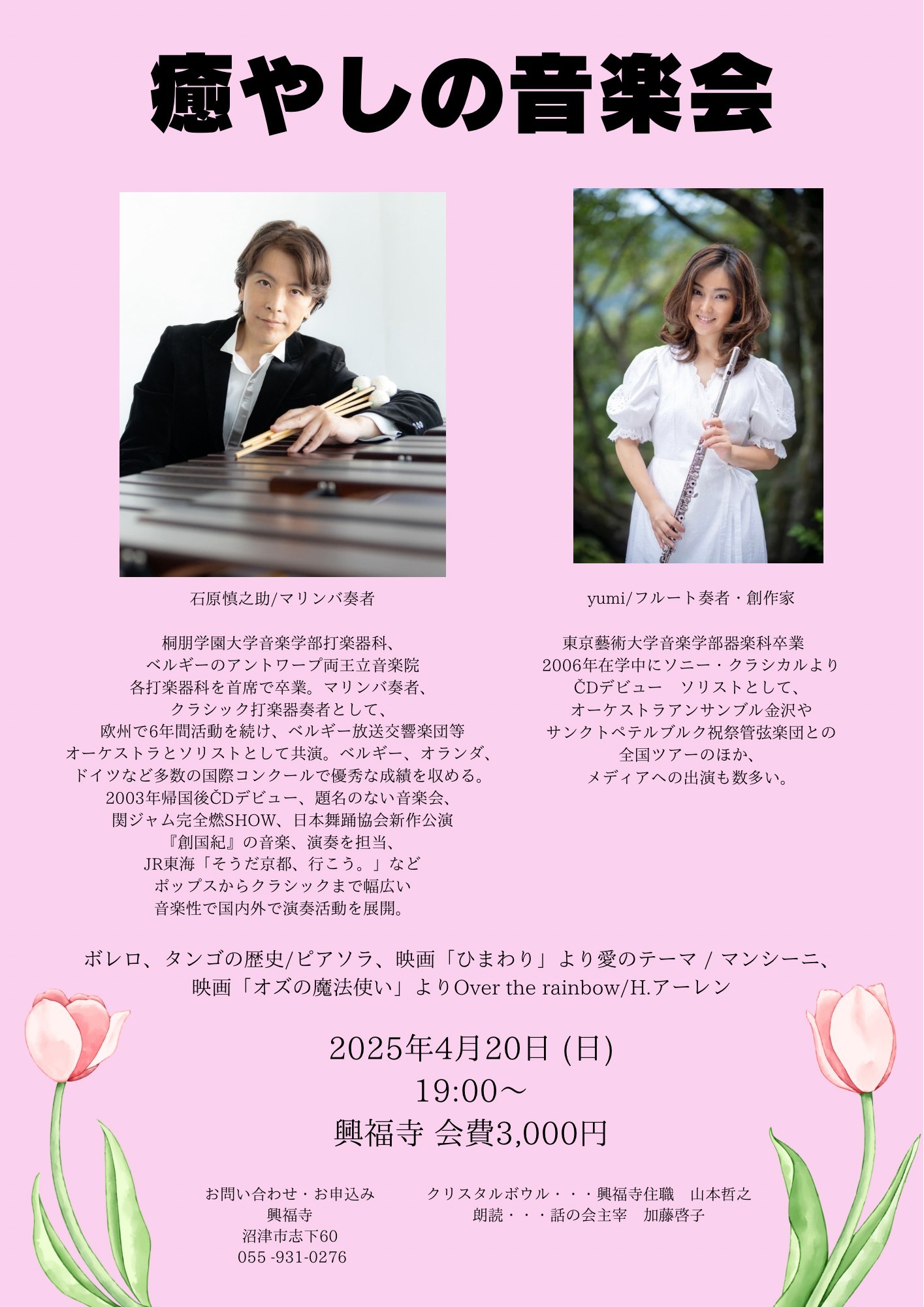 ■内容…藤原道山による尺八コンサート。ゲスト:SINSKE(マリンバ)